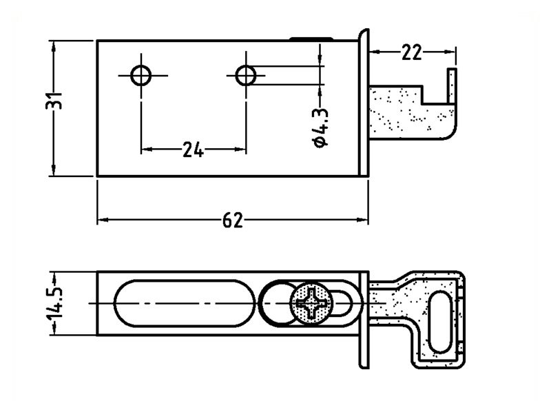 Niveau- und Tiefenverstellung über Schrauben an der Vorderseite.
