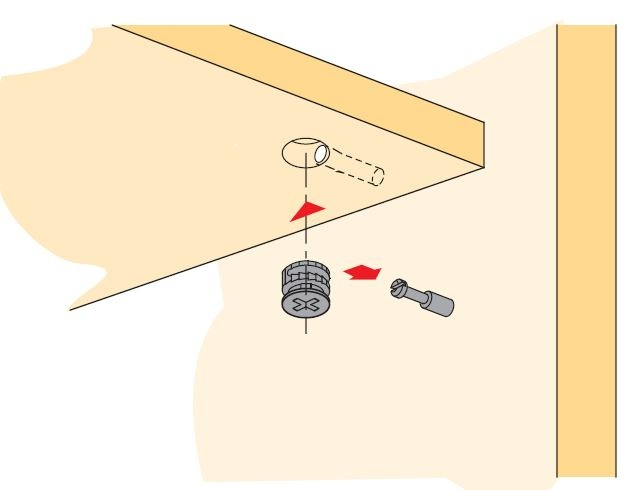 On utilise les ferrures Type VB36 soit pour l’assemblage du caisson (armoire) soit pour la mise en place d’étagères de renfort.