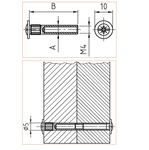 Douille de raccordement avec tête aplatie nickelé pour l'assemblage des caissons.